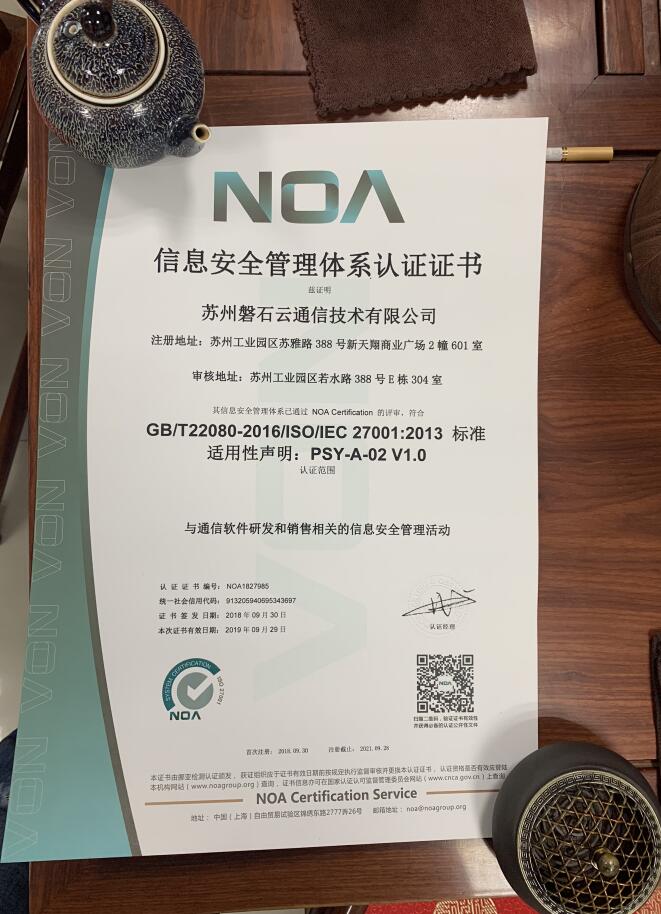 经过一段时间的努力,磐石云公司所申请的ISO27001国际信息安全认证证书已经审核通过,磐石云呼叫中心系统通过国际信息安全认证机构为期一周左右的培训、审核、对软件的测试,源代码的审核。苏州磐石云拿到了IOS27001认证。